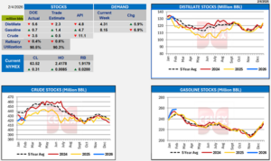 In the U.S., production and refinery operations continue to recover from recent winter storms. While some crude output has returned, refinery restarts remain uneven due to power and mechanical issues. This has kept refined product markets—particularly distillates—tighter than crude.