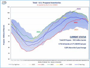 Due to reduced Russian pipeline gas, Europe will need 160 additional LNG shipments this winter with nearly half of the EU’s supply expected to come from LNG, supporting U.S. natural gas prices. Meanwhile, U.S. propane/propylene inventories fell by 2.9 million barrels but remain 9% above the five-year average.